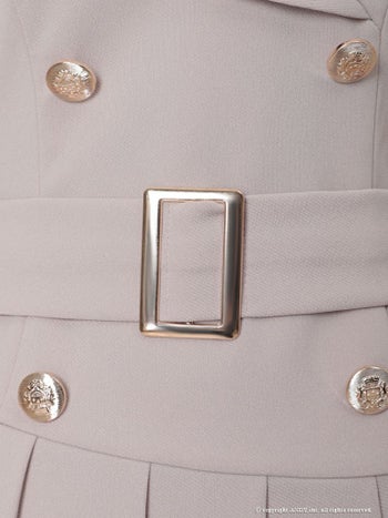 3. 【an/アン】襟付き ワンカラー プリーツ フレア 飾りボタン 飾りベルト ノースリーブ フレアミニドレス(aoc3803)