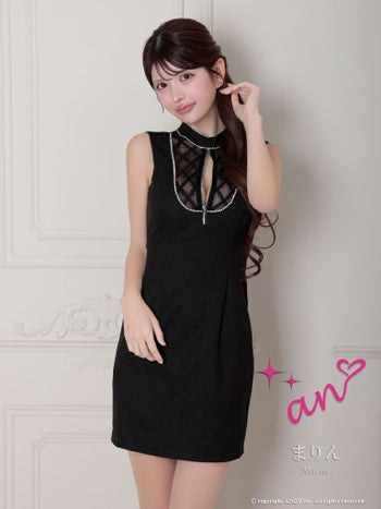 キャバドレス タイトミニドレス an アン ジップデザイン ビジュー レース ノースリーブ 背中開き