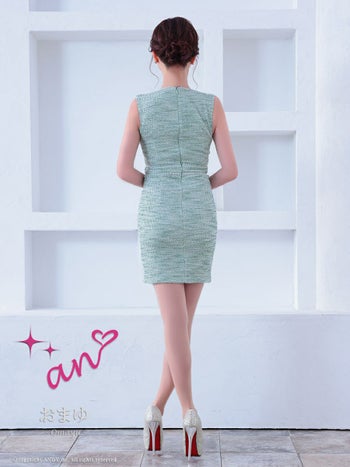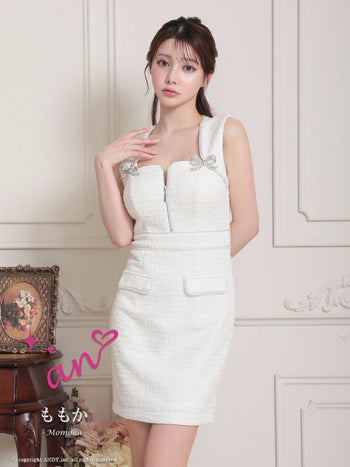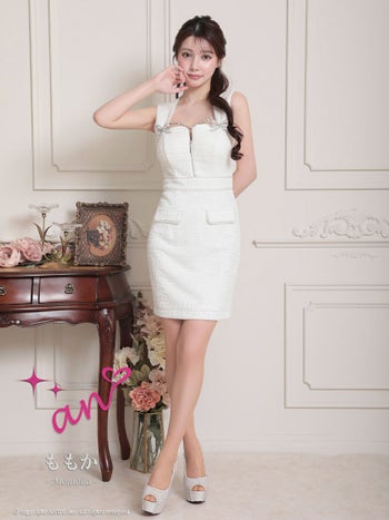 キャバドレス タイトミニドレス an アン ツイード リボン ビジュー ノースリーブ ジップデザイン 飾りポケット
