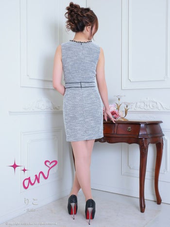キャバドレス タイトミニドレス an アン ツイード ノースリーブ ビジュー フロントジップ タイトミニドレス