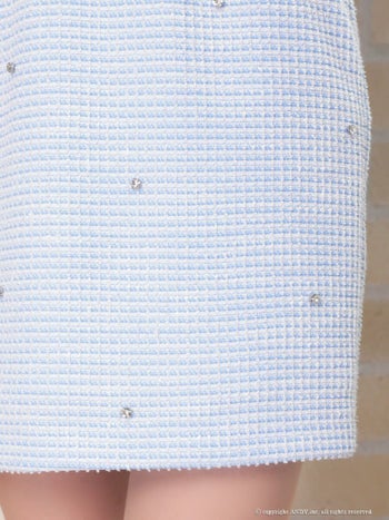 4. 【an/アン】ジップデザイン ノースリーブ ツイード ビジュー タイトミニドレス(aoc3844)