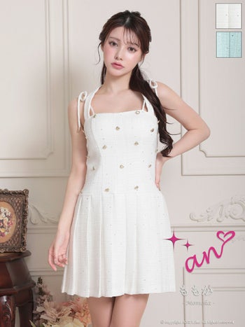 キャバドレス フレアミニドレス an アン ハートボタン ツイード スパンコール ノースリーブ キャミソール プリーツ