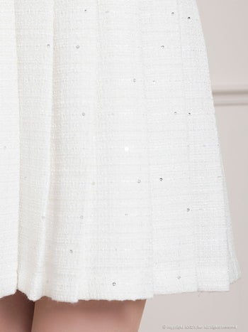 ハートボタン ツイード スパンコール ノースリーブ キャミソール プリーツ フレアミニドレスのメイン画像1