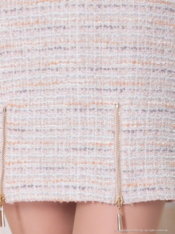 4. 【an/アン】ツイード パールボタン ノースリーブ ジップデザイン ビジューライン タイトミニドレス(aoc3859)