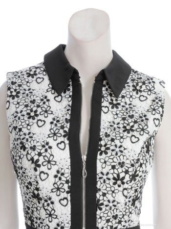 3. 【an/アン】ジップデザイン ノースリーブ フラワー レース モノトーン 襟付き ウエストマーク フレアミニドレス(aoc3889)