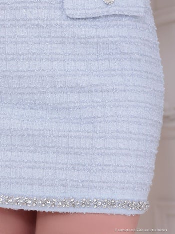 3. 【an/アン】チェック柄 ツイード ジップデザイン セットアップ ノースリーブ スクエアネック ビジュー 飾りポケット タイトミニドレス(aoc3893)
