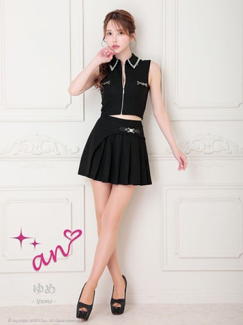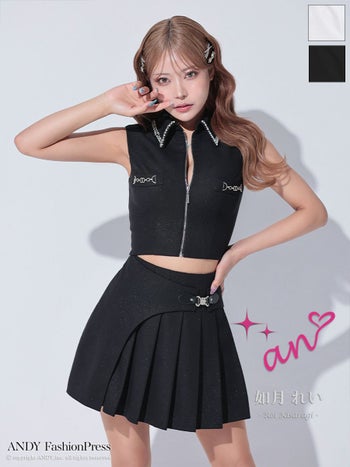 キャバドレス an アン ビジュー セットアップ ノースリーブ プリーツ バストジップ タイトミニドレス