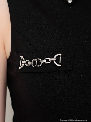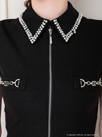 3. 【an/アン】ビジュー セットアップ ノースリーブ プリーツ バストジップ タイトミニドレス(aoc3918)