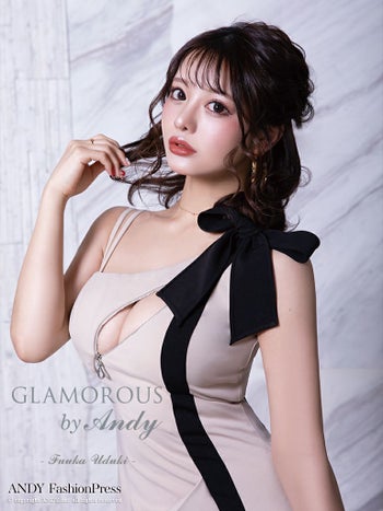 キャバドレス タイトミニドレス GLAMOROUS グラマラス ノースリーブ バイカラー ジップデザイン アシンメトリー リボン ワンショルダー