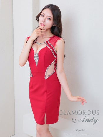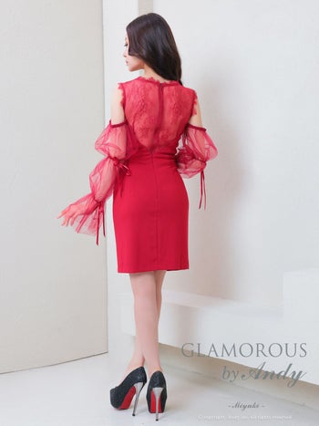 4. 【GLAMOROUS/グラマラス】2way ノースリーブ 長袖 リボン シアースリーブ ウエストカット バストカット ビジュー レース スリット タイトミニドレス(gmsv873)