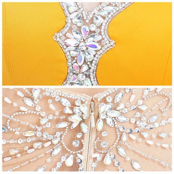 後ろのビジューデザインがラグジュアリー感を持たせるミニドレス。