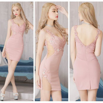 XSあり!サイドカットでSEXYさも忘れずに♪ 【Angel R/エンジェルアール】キャミソール サイドシースルー フラワーレース バストギャザー タイトミニドレス(AR22310)