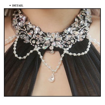 3. 【Angel R/エンジェルアール】ホルターネック くびれ透け ビジュー オープンバスト ノースリーブ パールチェーン シフォン タイトミニドレス (AR24231)