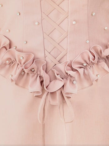 3. 【Angel R/エンジェルアール】ガーリー オープンバスト 2way ベア ノースリーブ フリルデザイン レースアップ ビジュー フレアミニドレス (AR25214)