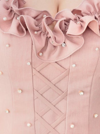3. 【Angel R/エンジェルアール】ベア ノースリーブ フリルデザイン レースアップ ビジュー ガーリー オープンバスト 2way フレアミニドレス (AR25214)