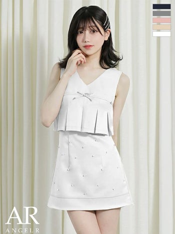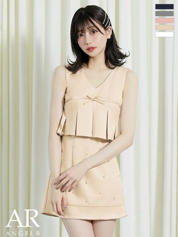 キャバドレス Angel R エンジェルアール リボン ビジュー ノースリーブ プリーツ パール フレアミニドレス