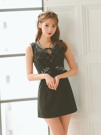 キャバドレス Angel R エンジェルアール 2way ビスチェ風 キャミソール パール ノースリーブ トップス フェミニン フレアミニドレス