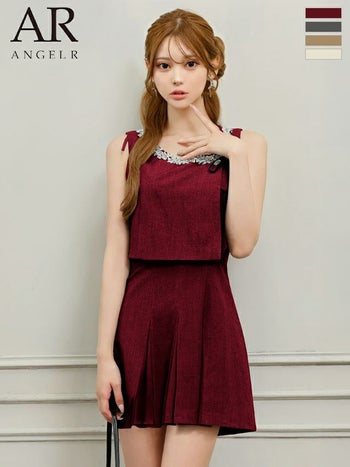 キャバドレス Angel R エンジェルアール プリーツ ガーリー 2way ノースリーブ トップス付き ビジュー リボン フレアミニドレス