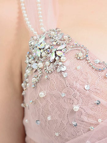 3. 【Angel R/エンジェルアール】ガーリー オープンバスト バストクロスレース ビジュー パールチェーン ノースリーブ タイトミニドレス (AR25804)