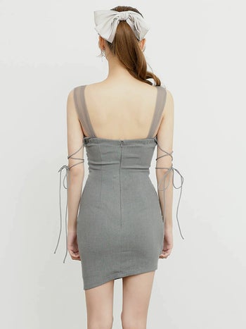 4. 【Angel R/エンジェルアール】ノースリーブ リボン サイドカット タック メッシュ シンプル タイトミニドレス (AR25859)