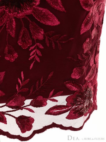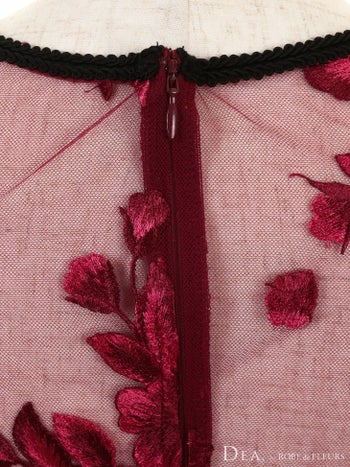 4. 【DEA.by ROBE de FLEURS/ディア】フリル ノースリーブ フラワー刺繍 タイトワンピース パールボタン スパンコールレース バイカラー ひざ丈ドレス(DE1849)