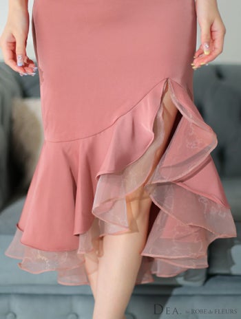 3. 【DEA.by ROBE de FLEURS/ディア】シンプル マーメイドシルエット バックチュールリボン アシンメトリーフリル ひざ丈ドレス(DE2758)