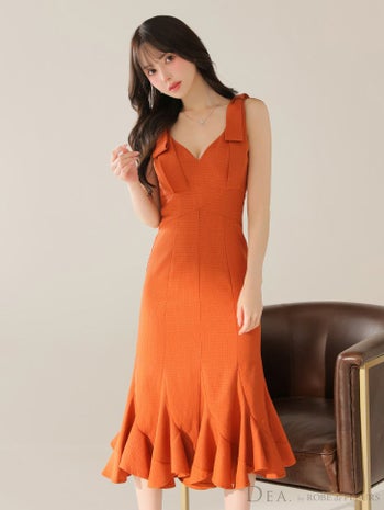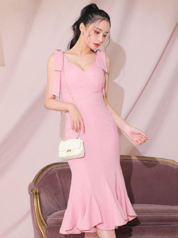 4. 【DEA.by ROBE de FLEURS/ディア】ラメツイル ショルダーリボン ノースリーブ マーメード タイトひざ丈ドレス(de2839)