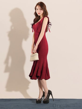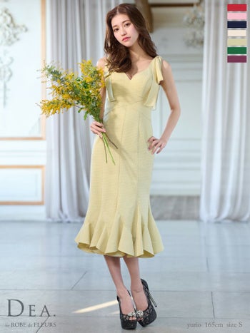 キャバドレス DEA.by ROBE de FLEURS ショルダーリボン ノースリーブ ラメツイル ワンカラー マーメード タイト 膝丈ドレス