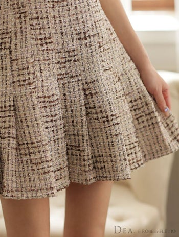 予約商品【9月上旬入荷予定】【DEA.by ROBE de FLEURS/ディア】プリーツミニ ノースリーブ ラメツイード タイトミニドレス