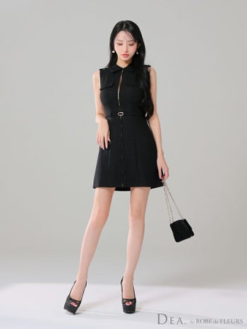 4. 【DEA.by ROBE de FLEURS/ディア】ウエストベルト シンプル 襟付き ジップデザイン ノースリーブ フレアミニドレス(DE3259)