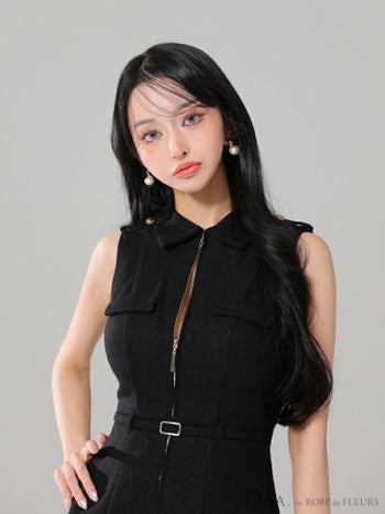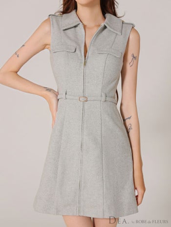 【DEA.by ROBE de FLEURS/ディア】ウエストベルト シンプル 襟付き ジップデザイン ノースリーブ フレアミニドレス