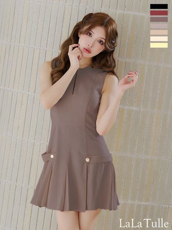 3. 【DEA.by ROBE de FLEURS/ディア】ノースリーブ サイドベルトモチーフ プリーツ オープンバスト シンプル ワンカラー フレアミニドレス (DE3362)