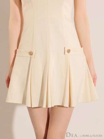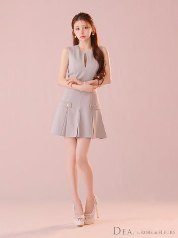 4. 【DEA.by ROBE de FLEURS/ディア】サイドベルトモチーフ プリーツ シンプル ノースリーブ オープンバスト ワンカラー フレアミニドレス (DE3362)