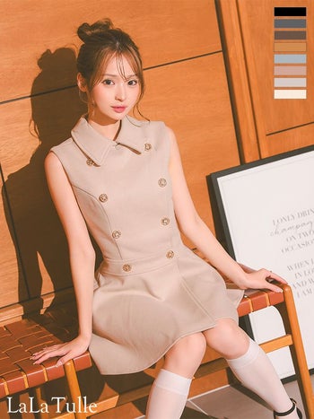 キャバドレス DEA. ROBE de FLEURS ディア ローブドフルール ダブルボタン ノースリーブ メルトン クラシカル 襟付き プリーツ フレアミニドレス