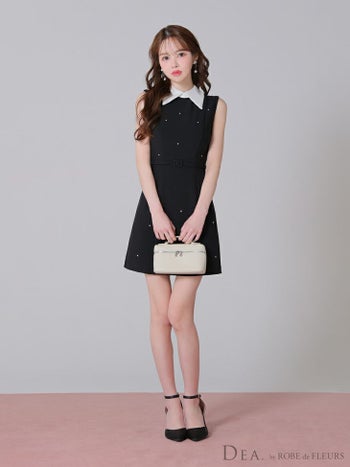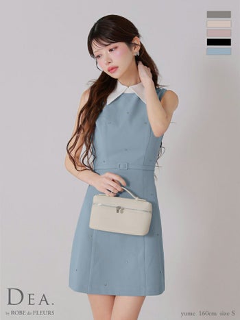 XS~Lあり!気品と可愛さが両立する♡ 予約商品【4月下旬入荷予定】【DEA.by ROBE de FLEURS/ディア】ベルトデザイン シンプル 襟付き ノースリーブ ビジュー タイトミニドレス (DE3384)
