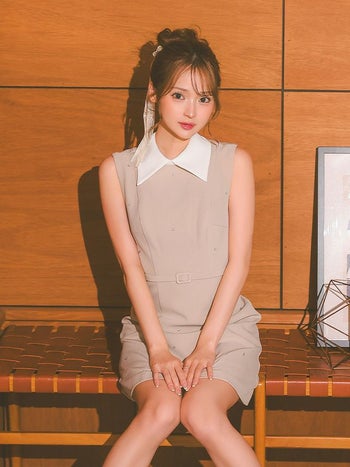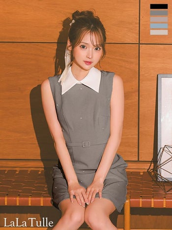 3. 予約商品【4月下旬入荷予定】【DEA.by ROBE de FLEURS/ディア】シンプル 襟付き ノースリーブ ベルトデザイン ビジュー タイトミニドレス (DE3384)