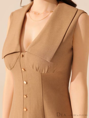 4. 【DEA.by ROBE de FLEURS/ディア】プリーツスカート ビッグカラー シンプル ノースリーブ フレアミニドレス (DE3395)