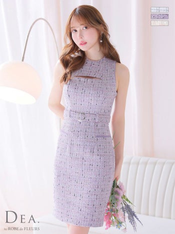 3. 【DEA.by ROBE de FLEURS/ディア】スプリングツイード バストカット シンプル チェック柄 ベルト タイト 膝丈ドレス(DE3541)