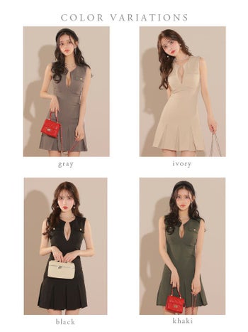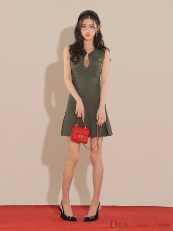 4. 【DEA.by ROBE de FLEURS/ディア】バストカット ノースリーブ プリーツ シンプル ゴールドボタン フレアミニドレス (DE3744)