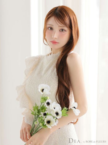 キャバドレス DEA. ROBE de FLEURS ディア ローブドフルール ノースリーブ フリル ハイネック フリンジジャガード アシメ フレアミニドレス