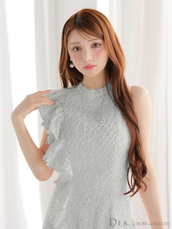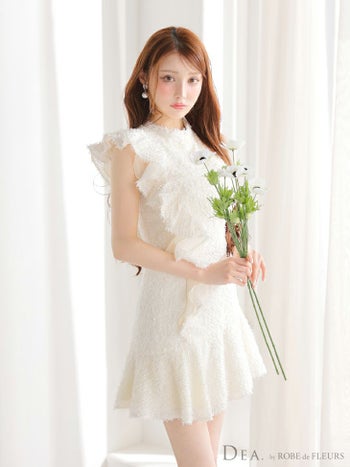 キャバドレス DEA. ROBE de FLEURS ディア ローブドフルール ノースリーブ フリンジジャガード フリル ハイネック アシメ フレアミニドレス