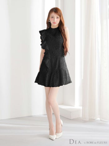 XSあり!男性ウケ抜群◎ 【DEA.by ROBE de FLEURS/ディア】ノースリーブ フリンジジャガード フリル ハイネック アシメ フレアミニドレス (DE4127)