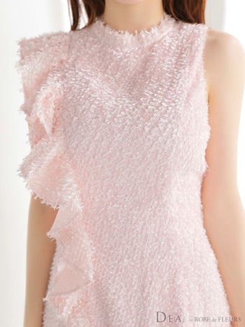 4. 【DEA.by ROBE de FLEURS/ディア】ノースリーブ フリンジジャガード フリル ハイネック アシメ フレアミニドレス (DE4127)