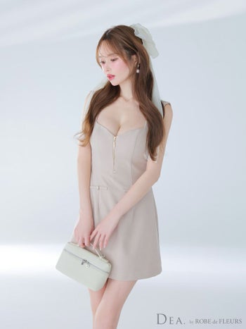 キャバドレス DEA. ROBE de FLEURS ディア ローブドフルール ジップデザイン ノースリーブ ワンカラー シンプル フレアミニドレス