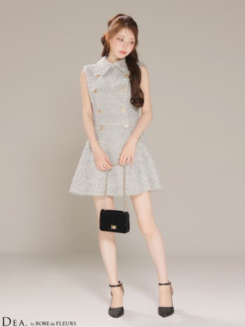 キャバドレス DEA. ROBE de FLEURS ディア ローブドフルール  ノースリーブ シャギーウール 襟付き ダブルボタン シンプル クラシカル フレアミニドレス
