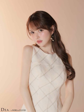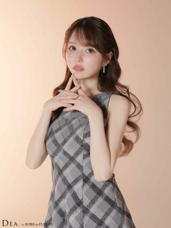 キャバドレス DEA.by ROBE de FLEURS ディア ハイネック ノースリーブ ツイード チェック柄 フレアミニドレス