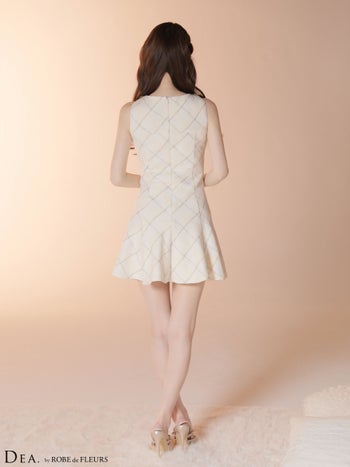 3. 【DEA.by ROBE de FLEURS/ディア】ハイネック ノースリーブ ツイード チェック柄 フレアミニドレス (DE4620)