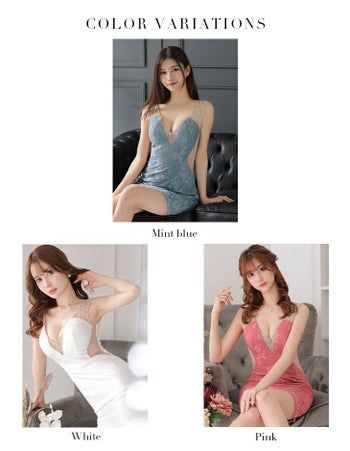3. 【Glossy by ROBE de FLEURS/グロッシー】シンプル ショルダービジュー ノースリーブ くびれ透け ストレッチ タイトミニドレス(GL2825)