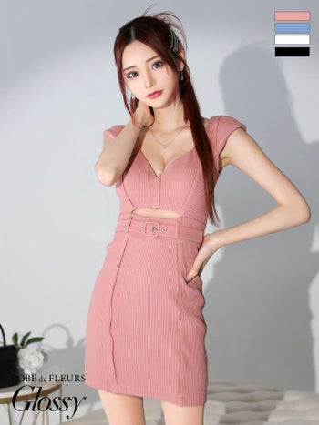 4. 【Glossy by ROBE de FLEURS/グロッシー】リブニット ウエストカット ベルトデザイン ノースリーブ タイトミニドレス(GL3168)