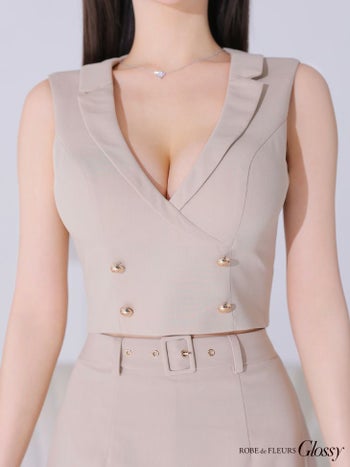 4. 【Glossy by ROBE de FLEURS/グロッシー】ダブルボタン 襟付き ウエストベルト パンツ セットアップ タイトミニドレス(GL3523)